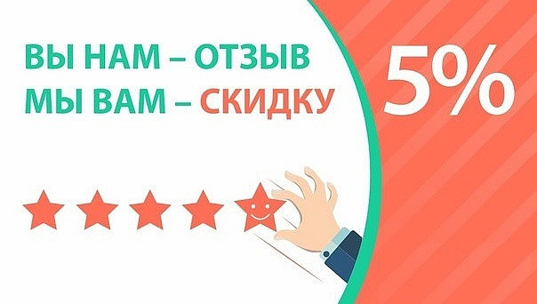 Один отзыв с датой не позднее 10 дней на одной площадке дает скидку на одну покупку 5%. Скидки не суммируются.